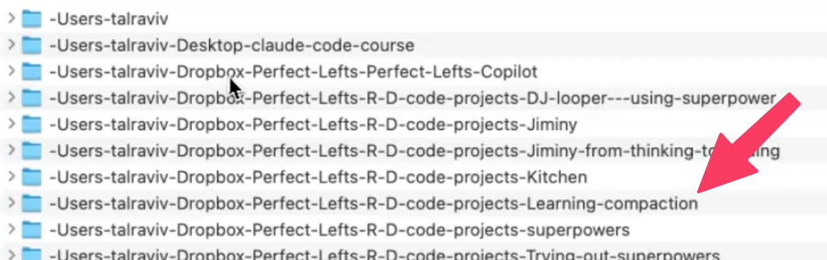 projectsfolder and click on the one that corresponds to your throwaway directory, above (This is the behind-the-scenes of Claude Code’s brain for something you’re working on, not the actual folder you’re working on)
